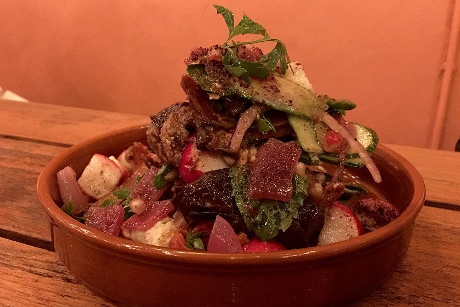 The end result is a salad that is both delightfully fresh with the crunchy pomegranate seeds and spring-like mint and at the same time rich and savoury with the crispy flatbreads, roasted eggplant slices and creamy eggplant dip. I will definitely order it again on my next visit.