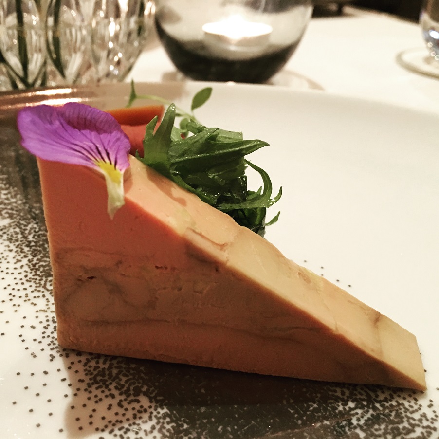 It was on the third course of Duck Foie Gras Terrine that the food started to outshine its presentation. The terrine itself consists of soy sauce-marinated duck foie gras cut into an amply sized and beautifully marbled triangle, accompanied on the plate by little rolls of duck breast, sliced quail egg, toasted pine nuts, a chewy baguette and raspberry gel. The terrine was rich, creamy and delicious and there was clearly something about the “lo sui” (master sauce) soy sauce marinate used that enhanced the flavour of the duck liver without adding saltiness.