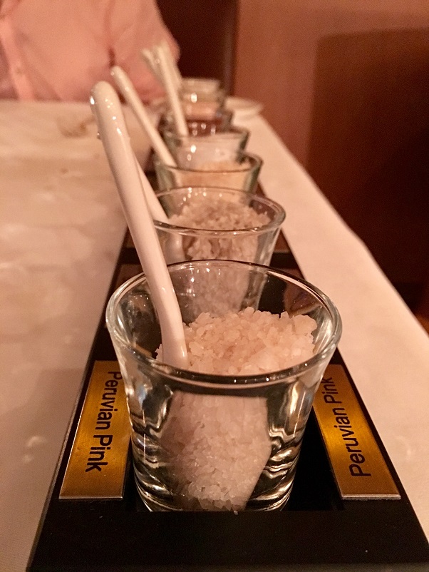 Speaking of trendiness, before the steak arrives, the server offers you a choice of eight salts, 12 mustards and a selection of knives from amongst a variety of jurisdictions. I thought that these offerings in their totality came off gimmicky; seemingly designed more for tourists than the refined environment I recalled. As it was, the steak barely needed additional salt and, call me a philistine, but I can’t quite describe the difference between the various artisanal offerings of sodium chloride. At least with mustard, one can easily distinguish spicy English from a smooth Dijon and the various other iterations.