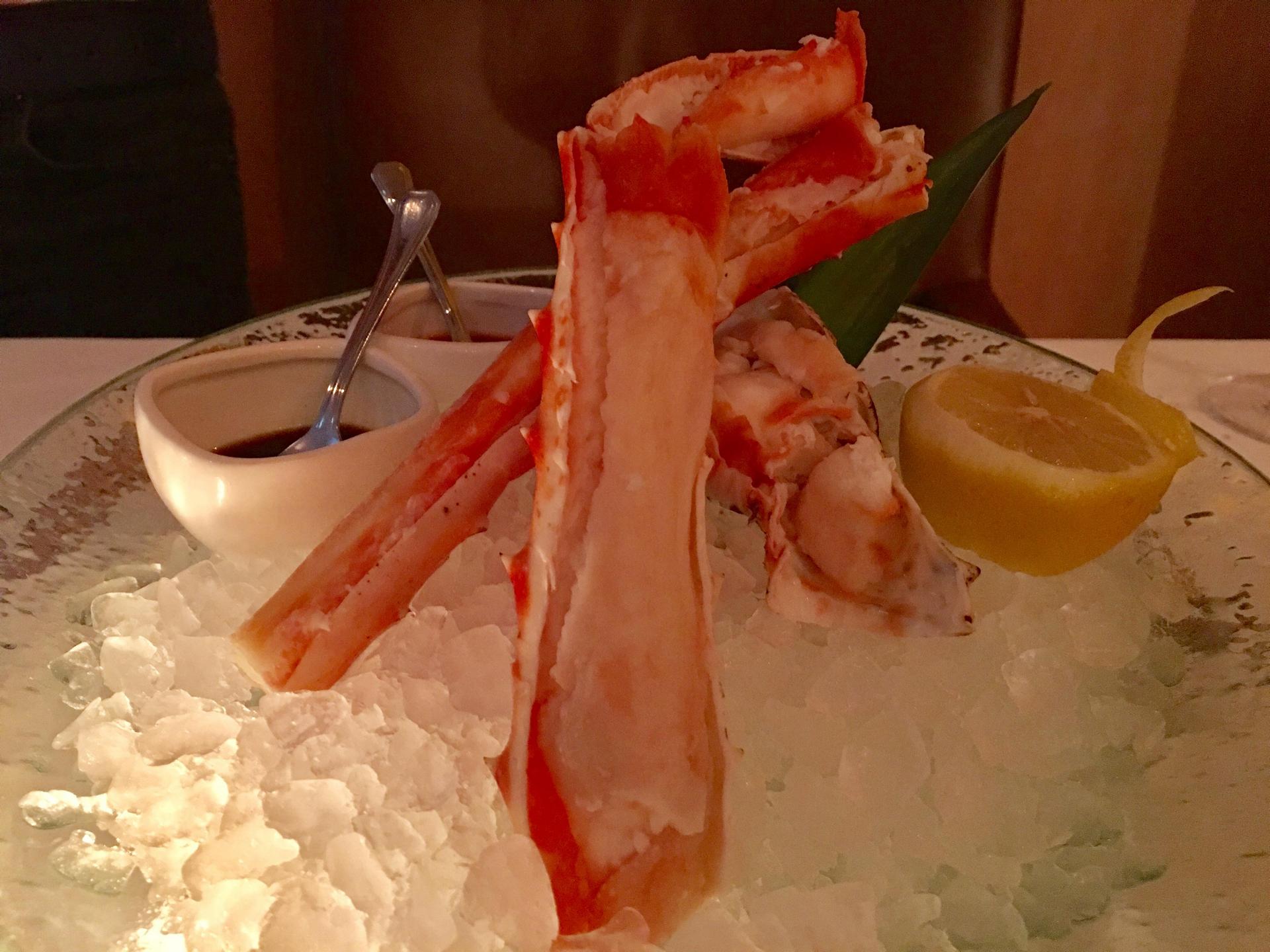 On my recent visit, we selected the four-ounce beef tenderloin steak tartar (HKD380) and the Alaskan king crab legs (HKD490) to start. The tartar is split equally between a traditional and an “Asian style” preparation. The traditional version was a very good mound of roughly minced beef spiked with salt, pepper, mustard, oil, and pickle for a smooth and satisfying taste. The waiter promised that the Asian version would be more citrusy and flavored with Japanese yuzu. The yuzu, however, was not detectable and the meat itself seemed mushy rather than minced. If I order this appetizer again, I would request the traditional preparation only.