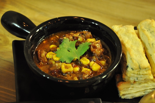 The oxtail was lovely and tender, and the sweetcorn provided a nice crisp element to the otherwise rich chilli. The flaky but dense scallion biscuits on the side proved a pleasant riff on the typical tortilla chips.