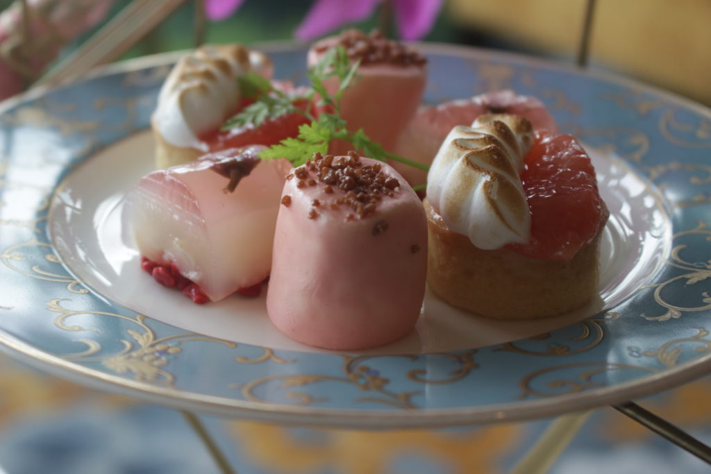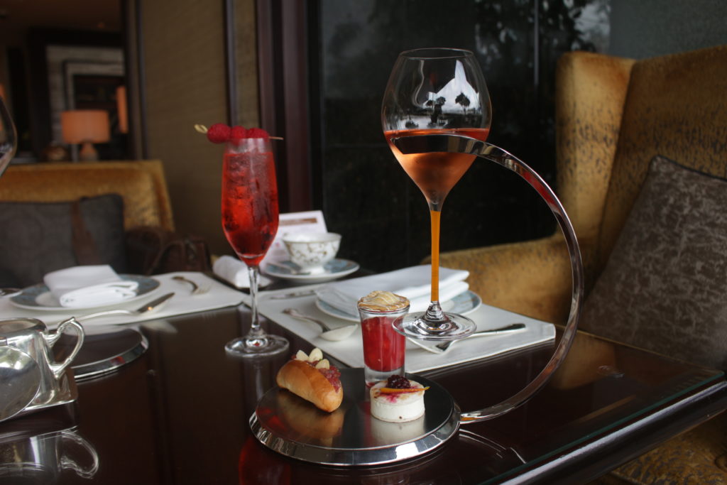 Sometimes, though, maybe we just want a little booze with our scones. Kowloon Shangri-La’s Lobby Lounge has answered that call with its just-launched “newfangled afternoon tea set featuring a touch of pink chic.”