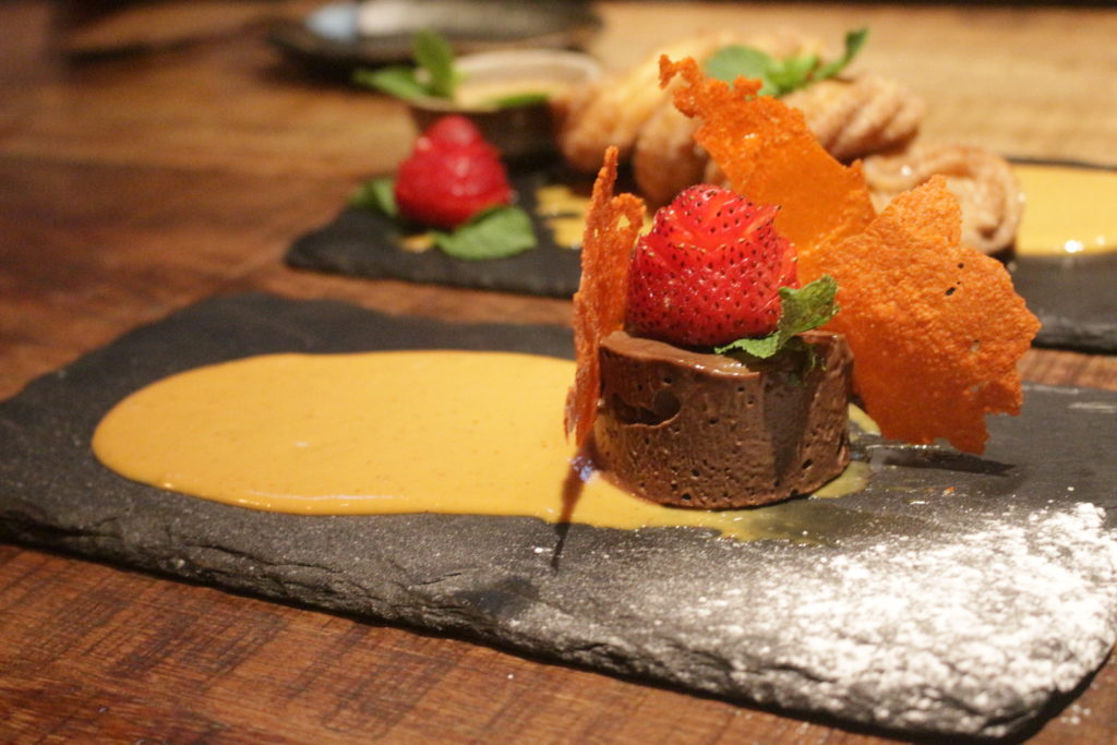 The churros are served with a homemade dulche de leche sauce that’s not too overwhelmingly sweet. Those are nice, but it’s the chocolate mousse, made with rich Peruvian chocolate, that we were especially into.