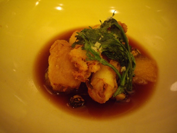 A second amuse bouche follow shortly. Flash fried frog legs spiced with cumin. Considering its strong taste and protein component, they could dress it up, add this to the menu and call it a five course meal.