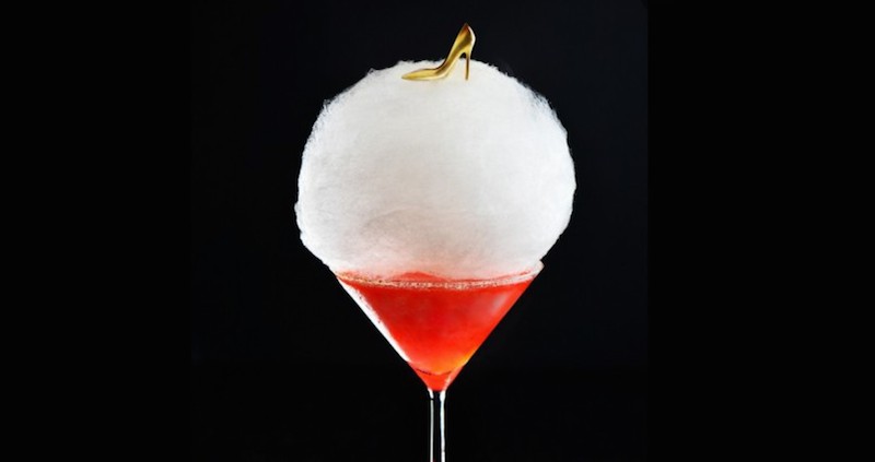 The ‘Her’ drink, the Cotton Berry Cloud, is a mix of frozen raspberry smoothie and vodka with dashes of lime juice and elderflower liqueur. Topped with a cotton-candy cloud and a golden Jimmy Choo shoe figurine, this tipple promises to dull the pain of those sky high heels you paid a fortune for and will probably wear once.