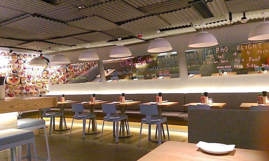 It’s a very basic menu, much smaller than Franklin’s former establishment. As the server explains the dishes, we’re directed to a few specials on the wall, including the tasting option of the Pho Flight, four mini bowls of pho with a different meat topping – chicken, roast duck, beef and pork (HKD88 for the four bowls).