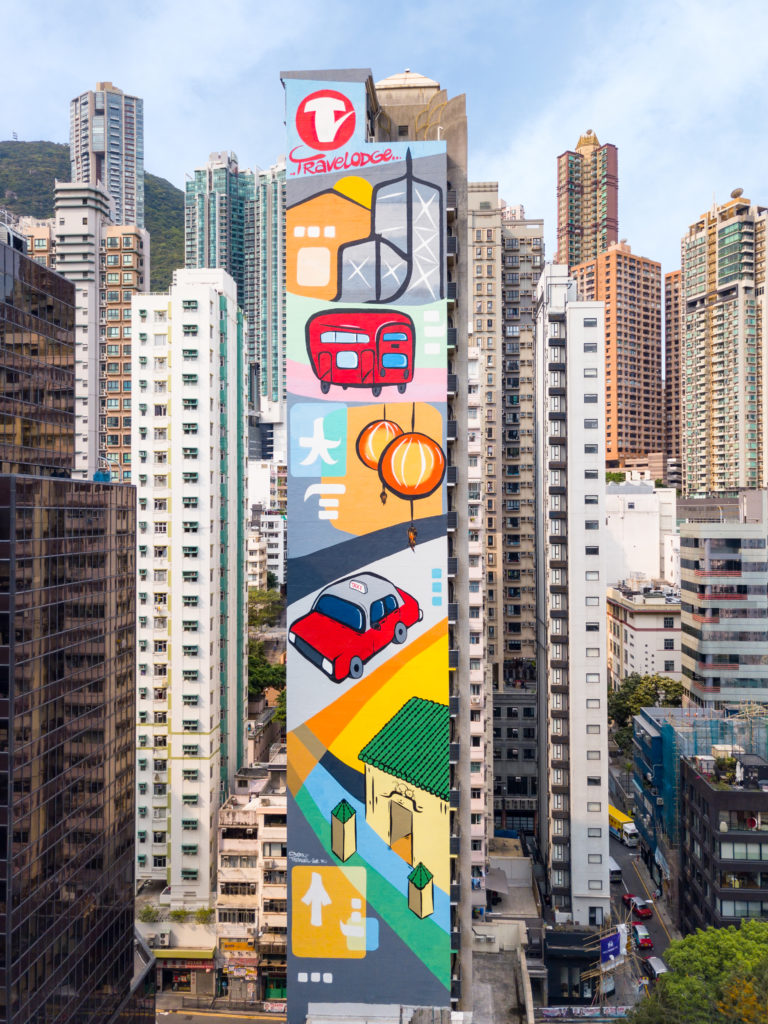 Designed and painted by Stern Rockwell, this colorful mural on the Travelodge building reflects the preservation and innovation of Hong Kong’s cultural heritage. The graffiti bridges old and new on Hong Kong’s iconic Hollywood Road. The rebirth of this old commercial street gives a chic resurgence to the neighborhood, where traditional tea parlors and antique shops sit warmly by European-style cafés and modern art galleries. 263 Hollywood Road, Central.
