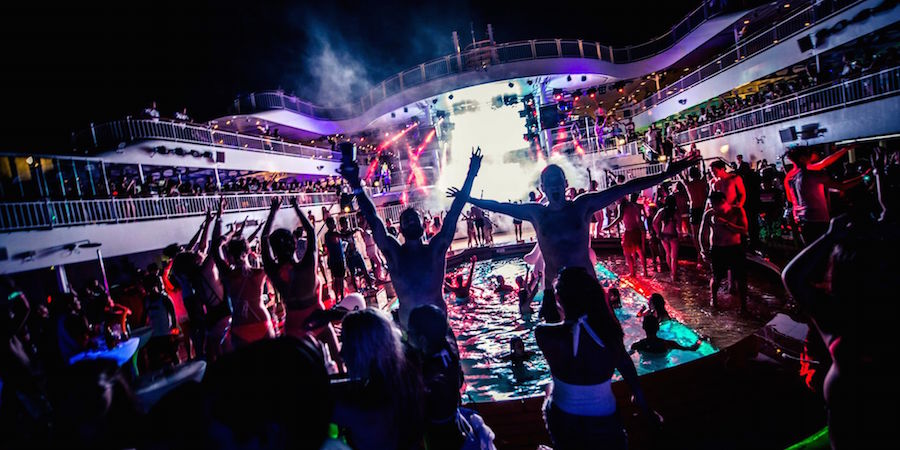 An overnight rave onboard a cruise ship, complete with a wide selection of booze, food, DJs spinning EDM tracks,, pools, Jacuzzis, the works. What could possibly go wrong?