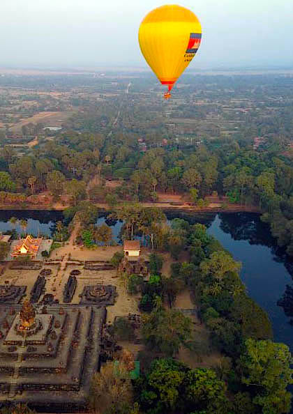 Cambodia Flight Holiday International Travel offers 40-minute hot air balloon rides over remote temples at sunrise and sunset for USD125 (HKD969) per person. They only operate during hot season, between November and April.