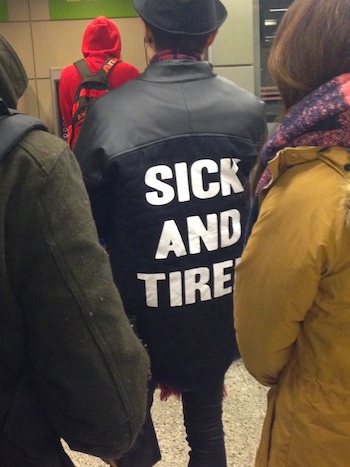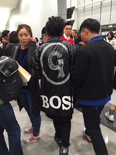 Apparently, whacking a choice phrase on the back of a long coat seemingly adds a bit of street thug and gangsta aura to an outfit.