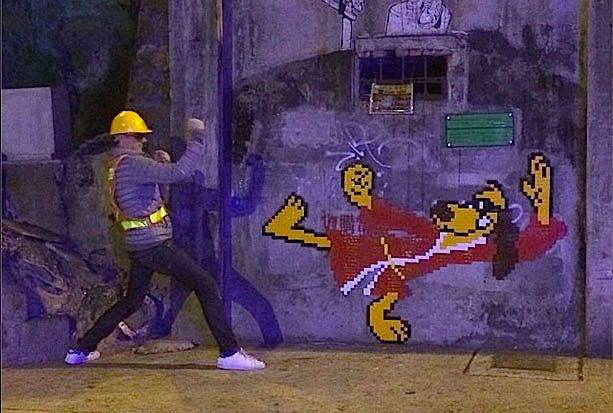 The tribute to the cartoon dog, who is himself a tribute to Bruce Lee, appeared on (and was subsequently removed from) a wall in Happy Valley last year after renowned French street artist Invader paid our city a visit.