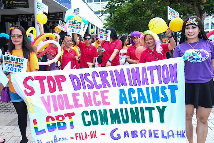 “Stop the Discrimination Violence against LGBT” was the theme of the first LGBT migrants community Pride Parade in Hong Kong on Sunday.