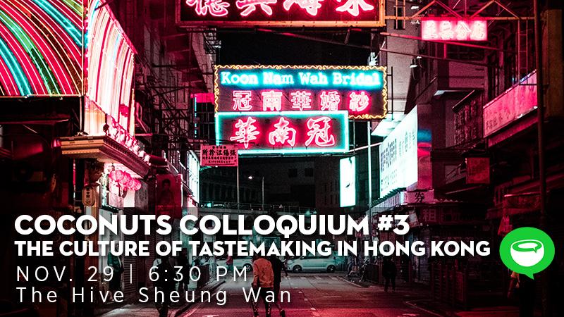 WHAT: Coconuts Colloquium # 3: The Culture of Tastemaking in Hong Kong (a panel discussion plus launch party with free-flow food, beer, wine, and sodas)