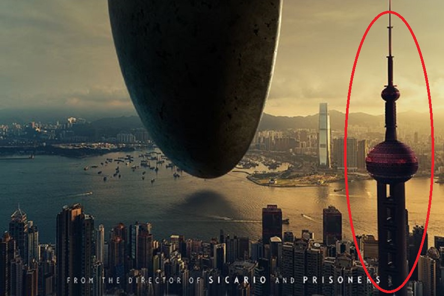 “Arrival”, an upcoming sci-fi movie starring Amy Adams and Forest Whitaker, has stirred up quite a bit of controversy today after netizens pointed out that one of its promo photos showed a Shanghai landmark unceremoniously shoehorned into the Hong Kong skyline.