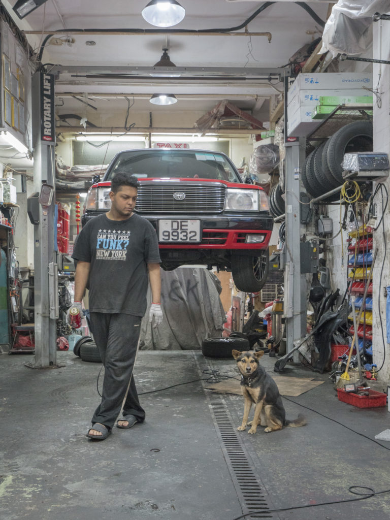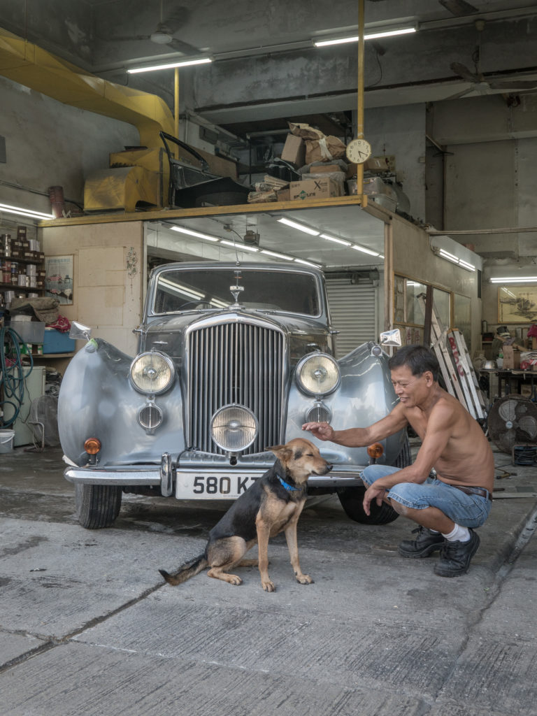 Like his last two books about Hong Kong’s shop and market cats, the imagery in HK Garage Dogs contains a lot of textures: greasy exhaust pipes, colorful wires, and waxed car chassis act as backdrops for a lot of these portraits.