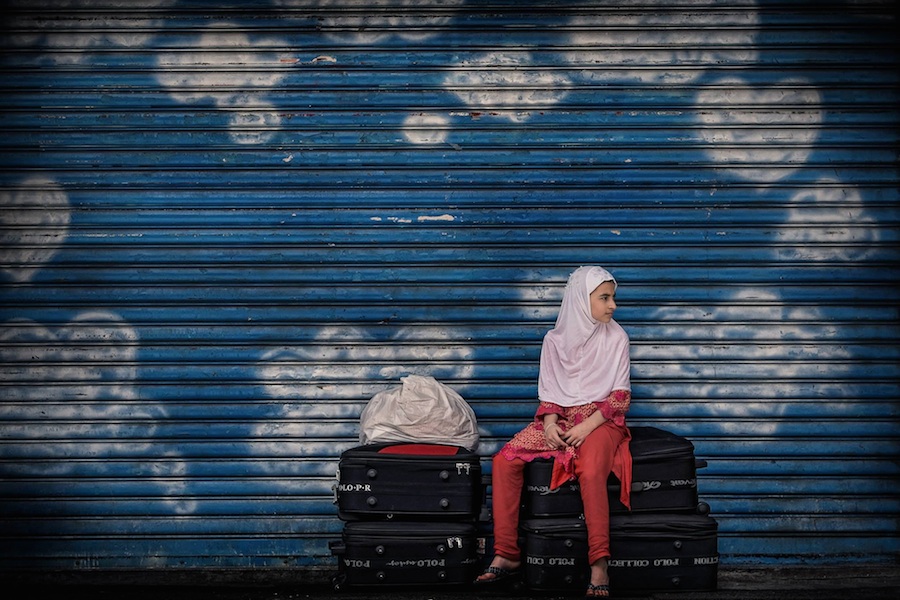 A photo of an ethic minority girl sat on a stack of suitcases against a painted store front shutter in Hong Kong has won the WMA Open Photo Contest for 2015/16.