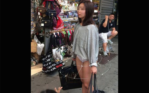 Feel you’re not turning enough heads when you go out shopping? Why not try what’s been dubbed by netizens as “The Emperor’s New Skirt”, a Hong Kong girl’s barely there fashion statement that’s been creating quite a buzz online.