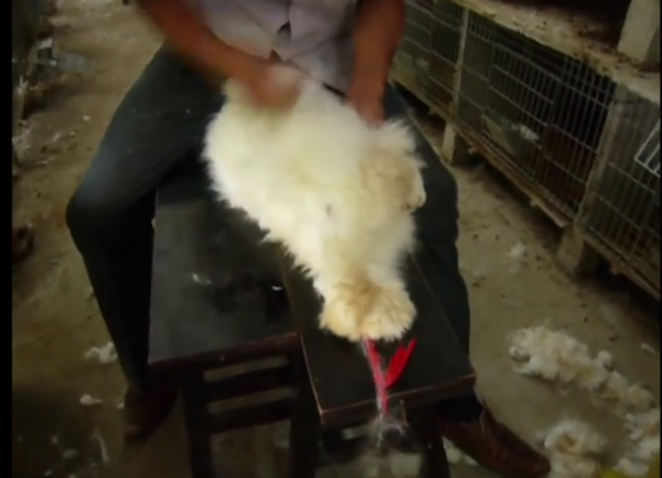 PETA released a video of Chinese farmers violently ripping the fur off live angora rabbits bound to a bench, which has gone viral.