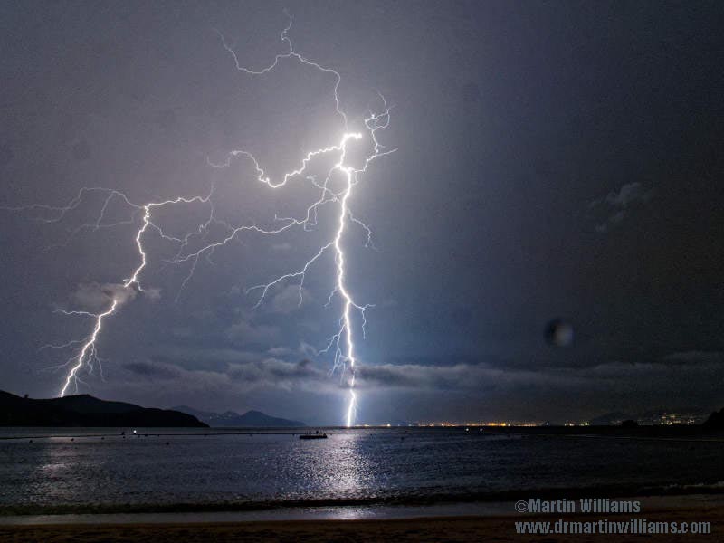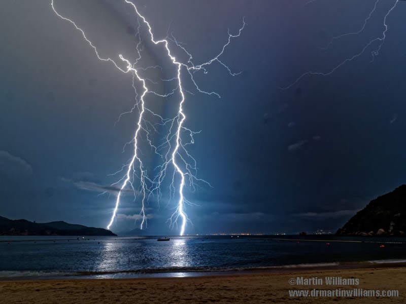 Striking lightning bolts as seen from Cheung Chau. Photo: Martin Williams/HK Outdoors