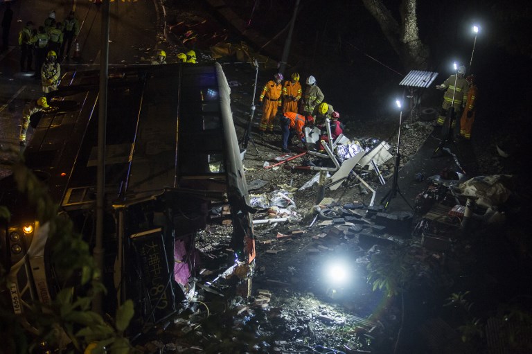 Images from the scene showed rescuers trying to reach passengers trapped inside the bus, which lay on its side with part of its roof torn off near the town of Tai Po in the northern New Territories.
