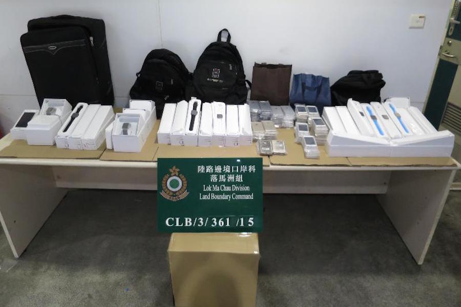 A 45-year-old woman and 34-year-old man were arrested on Saturday after customs officials found 132 iPhones and 26 Apple Watches in their car as they were driving across the border to Shenzhen.