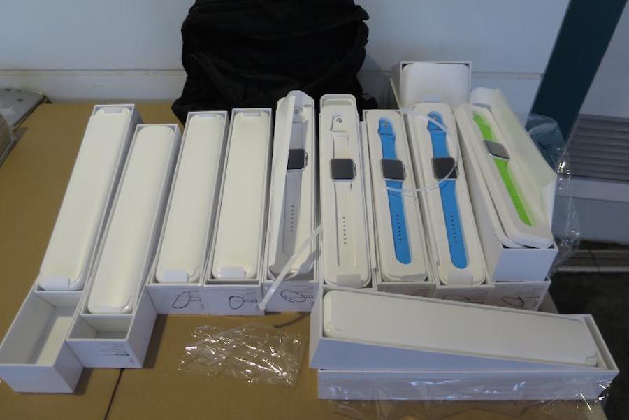 A 45-year-old woman and 34-year-old man were arrested on Saturday after customs officials found 132 iPhones and 26 Apple Watches in their car as they were driving across the border to Shenzhen.