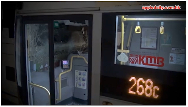 A 968-line KMB double-decker bus behind the truck was able to stop in time, but a 268C-line KMB double-decker behind the first bus was unable to brake fast enough, colliding with the back end of the 968.
