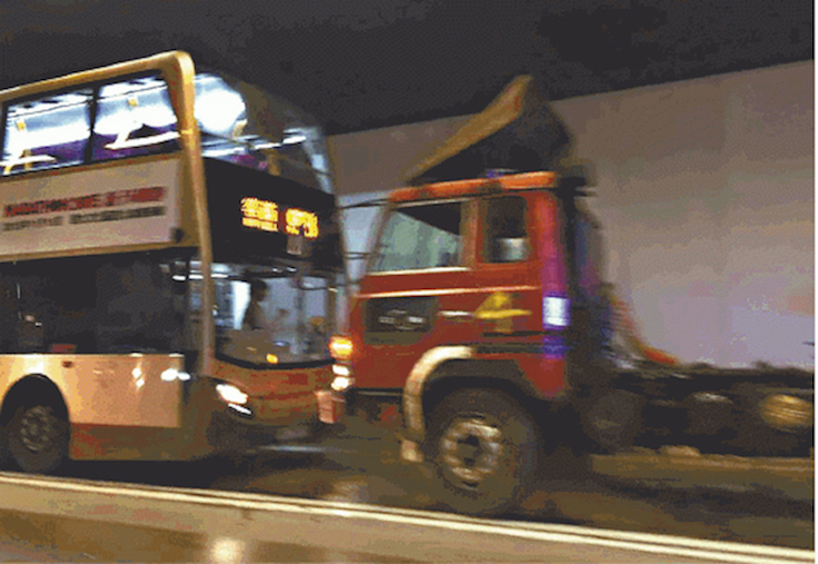 Yesterday evening, 24 were injured after a container truck lost control inside Tai Lam Tunnel, causing two double-decker buses to collide behind it.