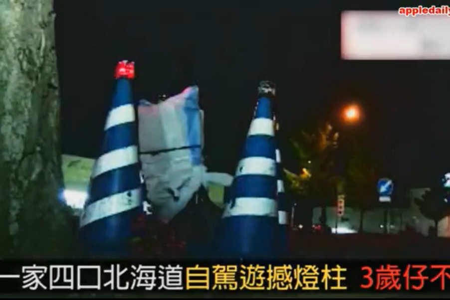 The boy’s father was driving a rental car from Sapporo to Asahikawa when the car crashed into a lamppost at 11:50am yesterday, Apple Daily reports.