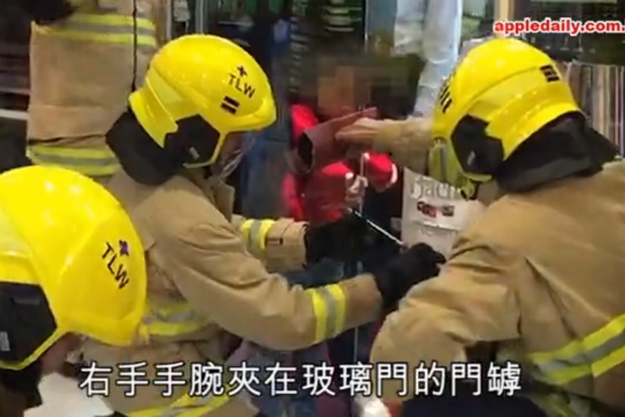 Apple Daily reports that the incident occurred in Provident Centre, at around 6pm. A witness surnamed Chan said that she heard a child screaming, and turned to see the young boy with his hand stuck between a glass door and doorjamb at a piano shop.