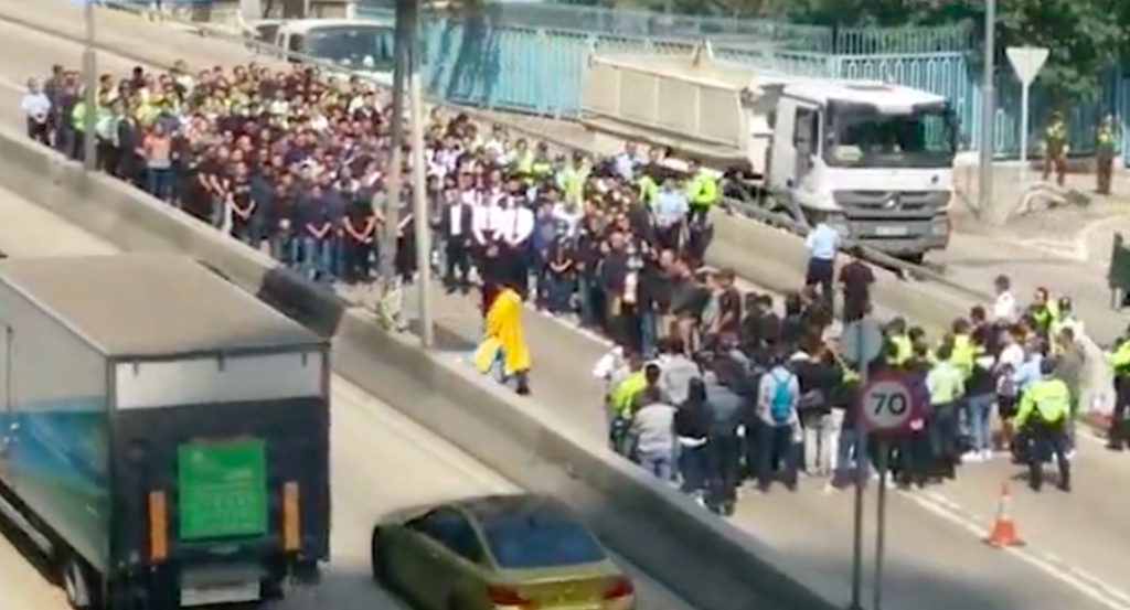 According to Apple Daily, the driver was trying to avoid the East Kowloon corridor, which was closed at 1:50pm today for a memorial service to commemorate a police officer who died after he was hit by a truck in the early hours of yesterday morning.
