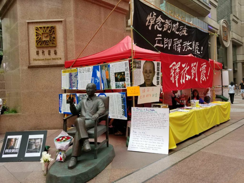 “We decided that the most important thing was to make the public aware of the anniversary of Liu Xiaobo’s death, rather than be confrontational, we moved it to another public area in Causeway Bay,” he told Coconuts HK.