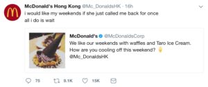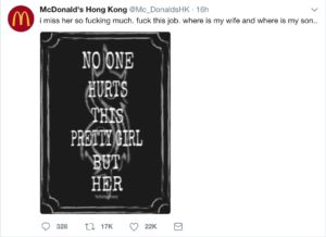 This weekend, an unverified Twitter account claiming to be McDonald’s Hong Kong started posting disturbing tweets, ranging from hilarious digs at singers to suicidal messages on social media.