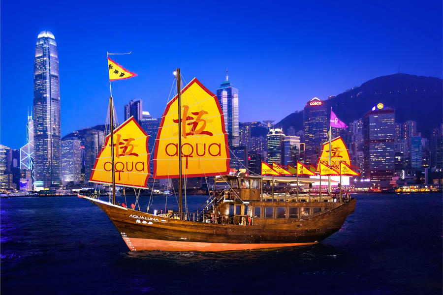 The old school wooden junk, which will be adorned with gold sails instead of the usual red to mark Aqua’s 15th anniversary, is Hong Kong’s last Chinese junk hand-built over an 18-month period.