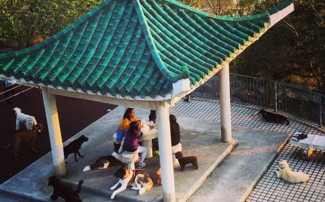 Uploaded to Instagram four hours ago by ivancnn, the charming snapshot shows a Hong Kong pagoda packed with at least 11 dogs and just three (maybe four) of their humans.