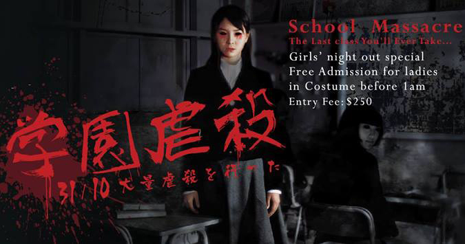 The nightclub will be hosting a “School Massacre” Halloween Party this Friday, during which partygoers will play some sort of Battle Royale-inspired game and kill each other until there’s only one left standing.