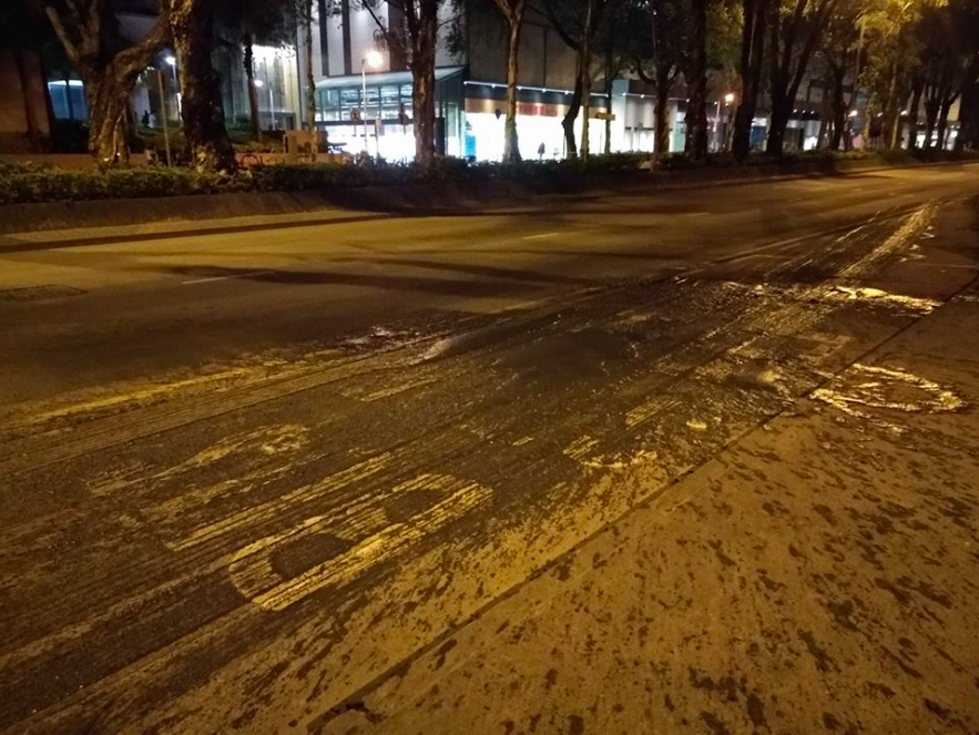 Personnel from the FEHD sent a few clean-up trucks to the area to clean up the mess, which was cleared up around midnight, and are still investigating what caused the spill.