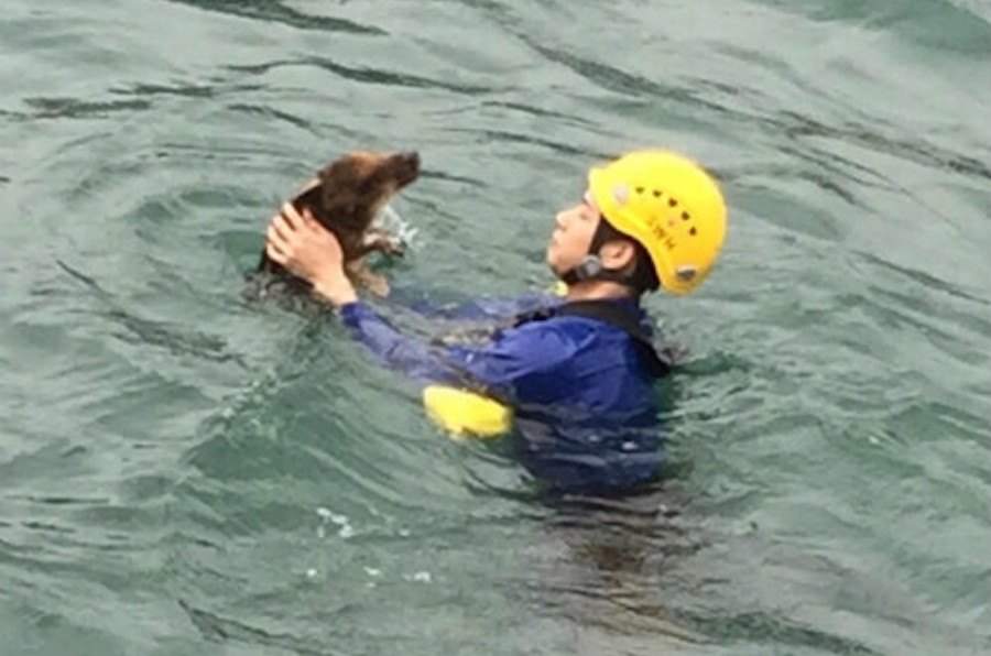 A baby wild boar had to be rescued yesterday afternoon when it was spotted struggling in the sea near the North Point Police Station, reports the Bastille Post.