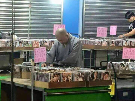 Commenters think not; many netizens have expressed their disbelief that the women are in fact, real Buddhist nuns. One person came up with the rather catchy (but inaccurate) comment, “monks buy AV, nuns buy LV”, in reference to an apparent monk (pictured below) who was recently photographed flipping through stacks of porn in Taiwan.