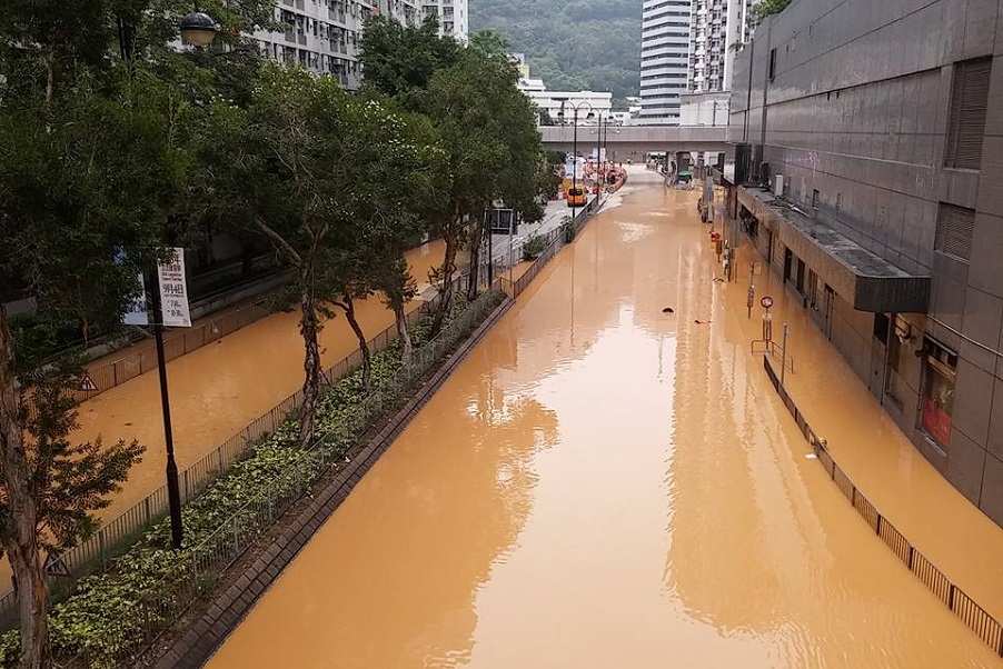 Ming Pao reports that the water was roughly one foot deep. Netizens likened the flooded roads to the Yellow River in western China, with one person humorously remarking that they would need to get to work by dinghy.
