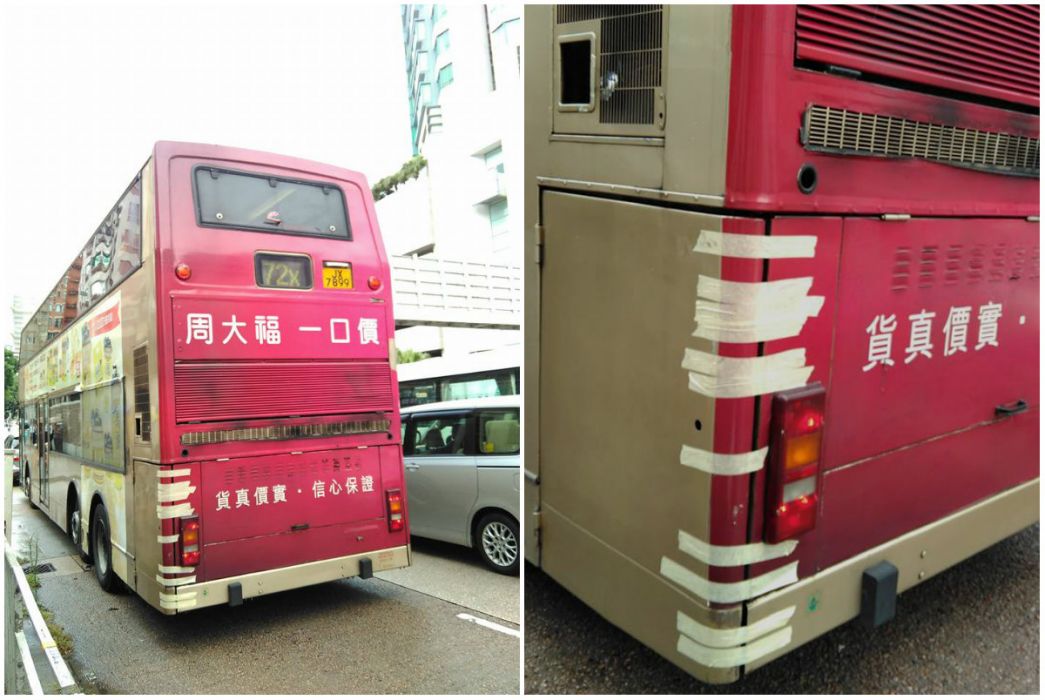 According to Oriental Daily, the bus was driving the 72X route between Tai Po and Mong Kok, and had been taped shut as the left rear engine door couldn’t be closed properly.