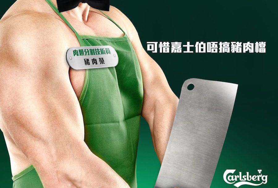 Their English translation doesn’t quite do the whole ad justice: “If Carlsberg did Butcher Shop, it will probably be the busiest butcher shop in town.”