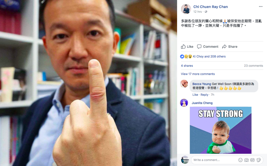 After the fracas, Chan took to Facebook to reassure people that he was ok, but his finger was swollen.