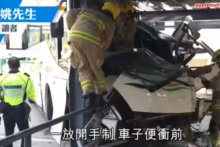 A witness, surnamed Yiu, told Apple Daily that all of the injured were “conscious and lucid”, and said the bus driver was lucky to get away with relatively minor injuries.