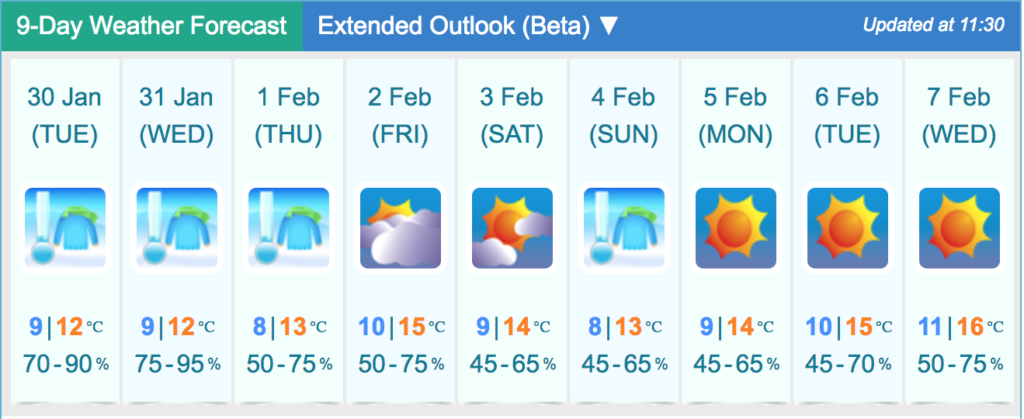 As of midday, weather stations on Hong Kong Island showed air temperatures hovering around 11 to 12 degrees Celsius.