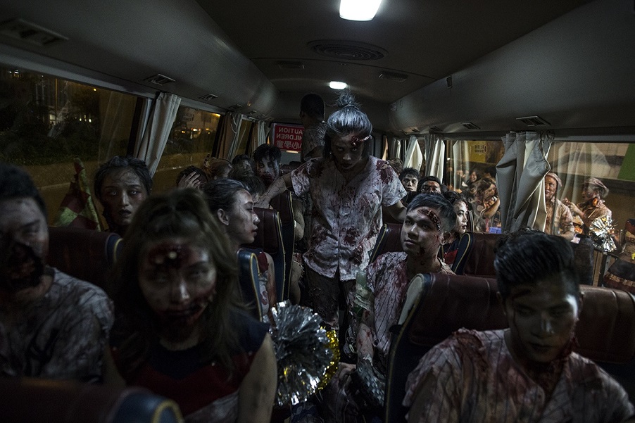 According to HK01, these photos were taken on Sunday during local group Zombies Paradise‘s annual festivities, which saw the gory guys and gals hit up Kowloon Bay, Lan Kwai Fong, and Wan Chai for brains (and drinks).