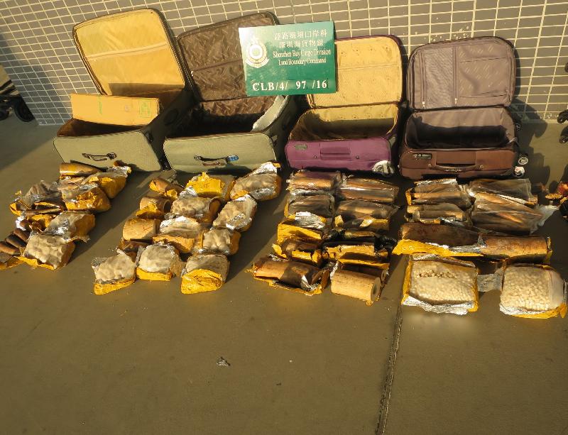 Last Thursday, customs seized roughly 99 kilos of suspected ivory, seven kilos of suspected hornbill beak, and two kilos of suspected agarwood – all worth a total of HKD1.05 million – at the Shenzhen Bay Control Point.