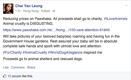 Originally charging a whopping HKD5,000 a day to take care of your pooch (or ferret or rodent), the chief executive’s eldest daughter is now willing to smother your pet with “100 percent care and attention” at only HKD300 a day, according to her profile on Pawshake, an online pet-sitting network.