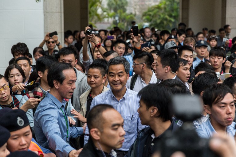 CY Leung made a brief appearance to thank some of the 1,500 visitors, but did not take questions from the media.