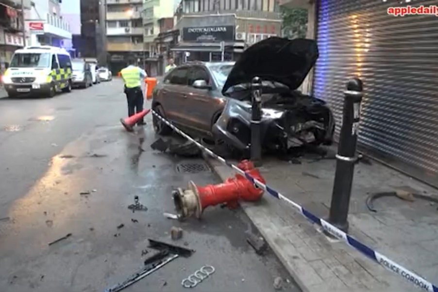 At 5:33am, the 28-year-old was driving along Hollywood Road in Sheung Wan when he lost control of the car while approaching Lok Ku Road, and drove onto the pavement.